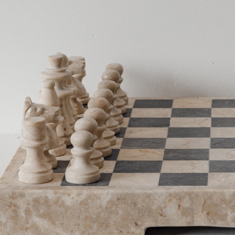 Our Doff Marble Chess Set includes meticulously carved chess pieces with intricate details, complemented by a luxurious marble board. Whether used for playing chess or not, this set doubles as a stunning display piece.
