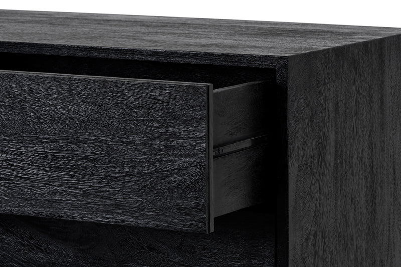 - Mango wood Black finish, Hafele superior German engineered hardware, soft drawer runners.