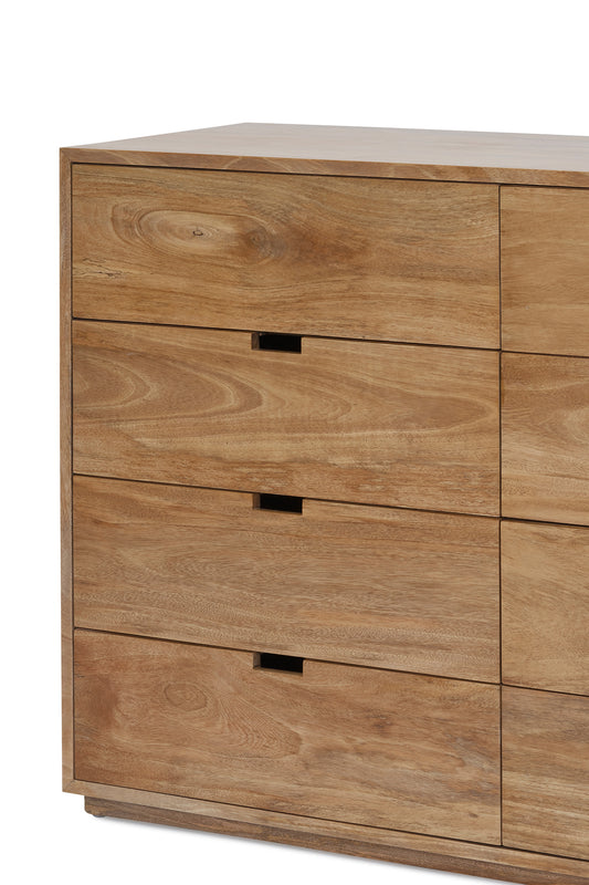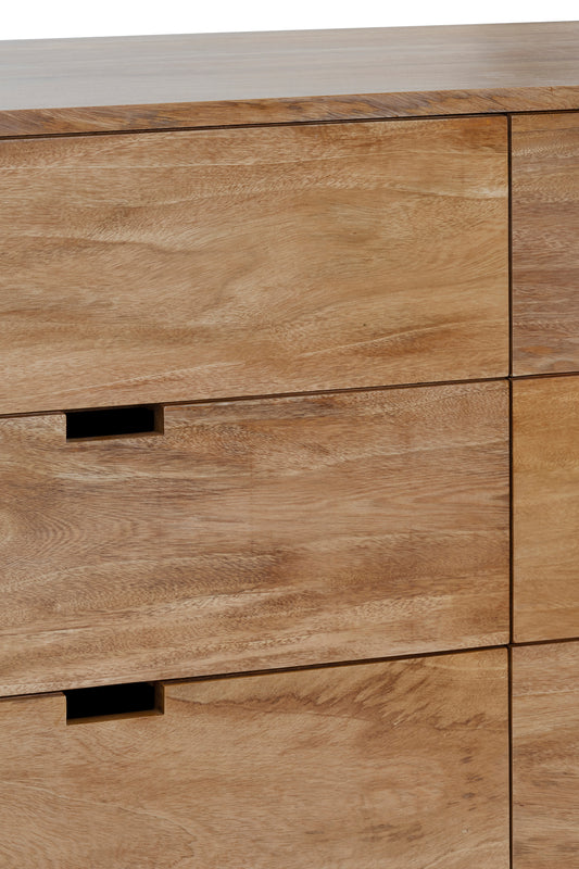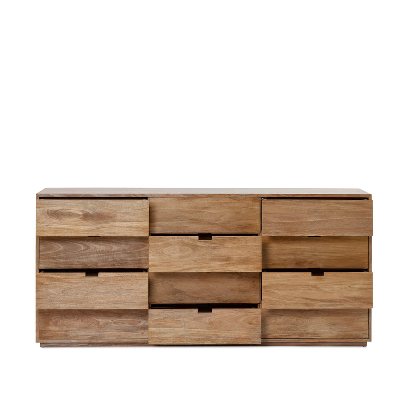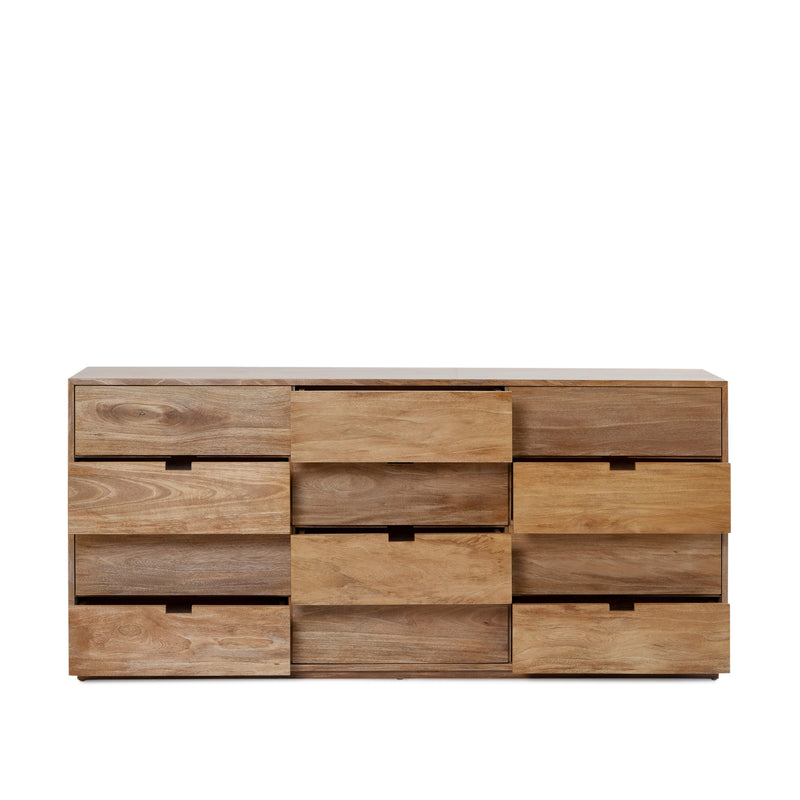 Made from mango wood, Natural finish with large solid sliding drawers with cut out handle. Pictured is the Domo 4x3 (four drawers high and three drawers wide) Please enquire for further configuration options.