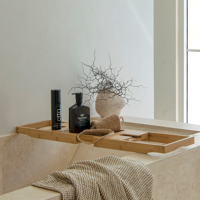 Have all your bath relaxation needs within hands reach with this wooden bath caddy. Perfect for any bath size with the expandable feature.
