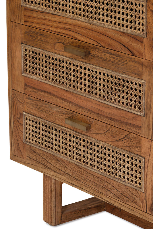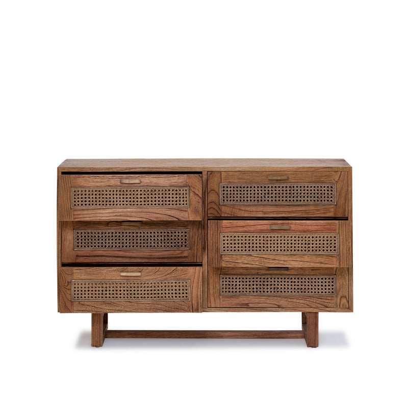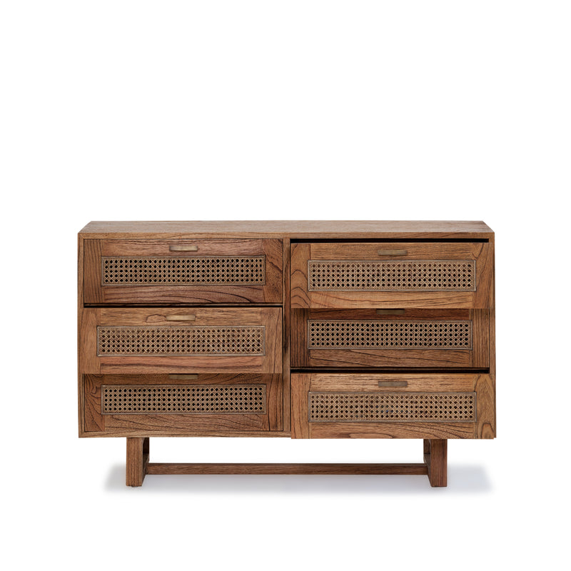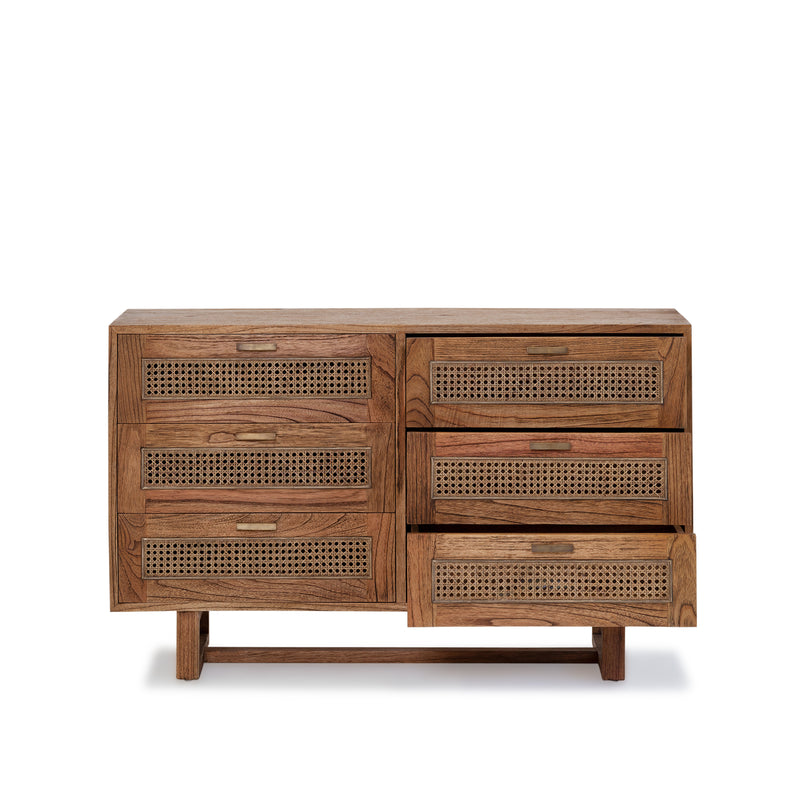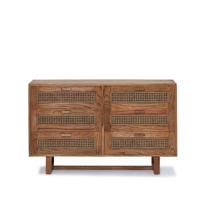 Built from mindi wood in antique finish. The Fitzgerald chest of drawers is three drawers high and 2 drawers wide (3x2). Please enquire for other configurations or shop the look here.