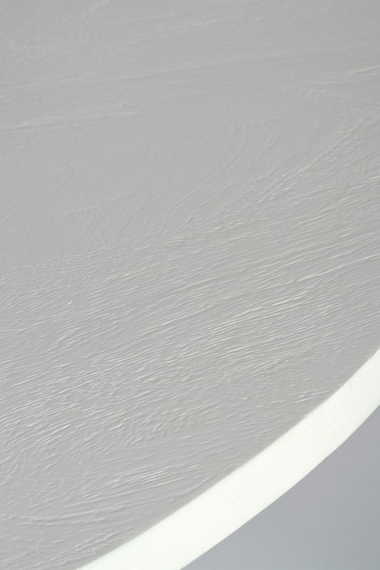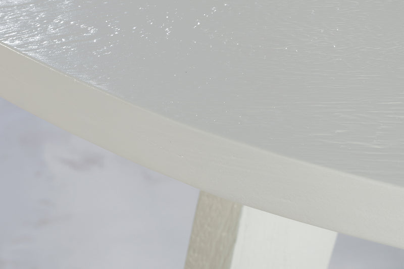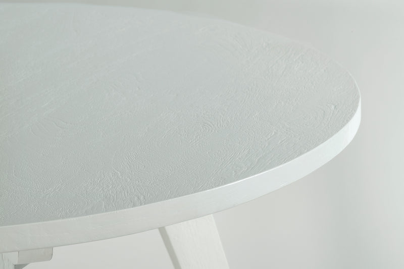 Made from solid mango wood with White finish. Round shape with tapered legs. Available in three size options.