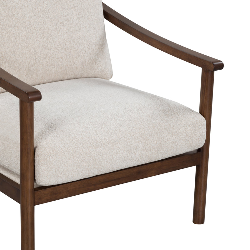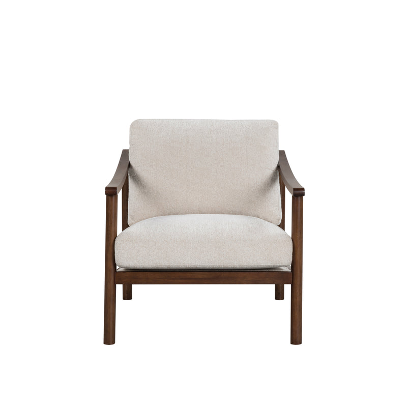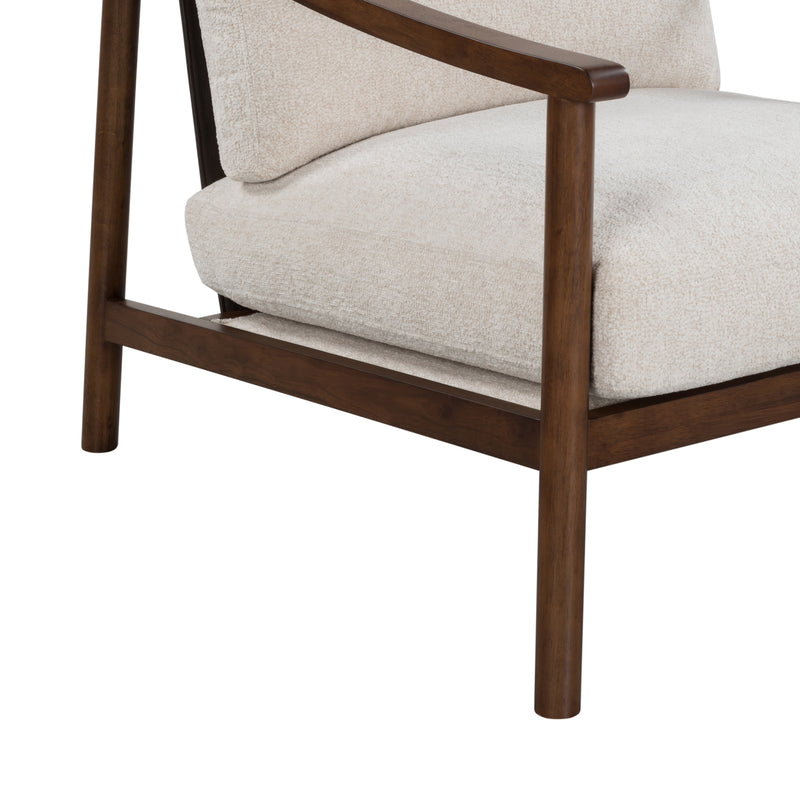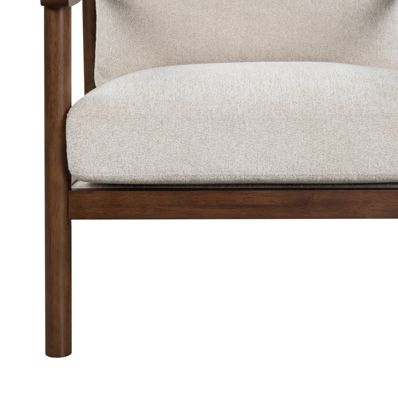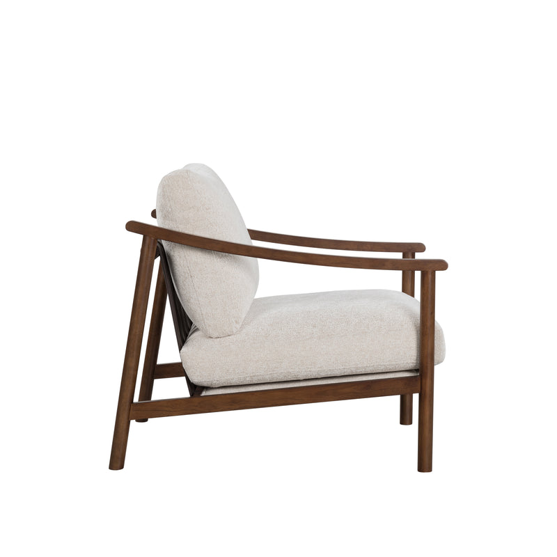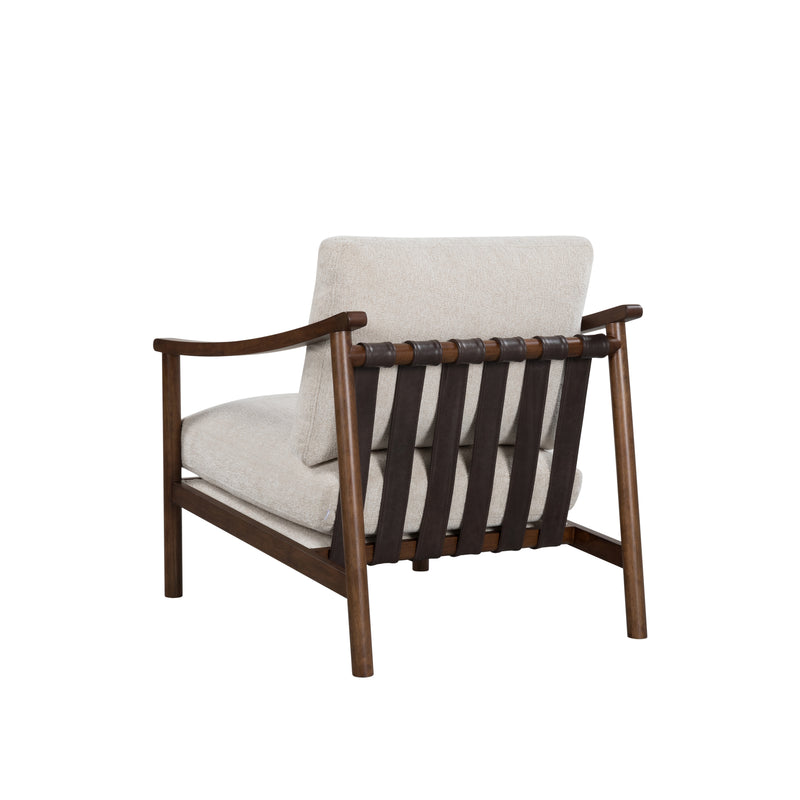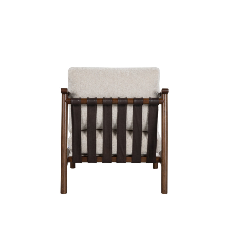 Crafted with a sturdy wooden frame with leather backing and textured cream upholstery. The elegant silhouette of the Hunter Arm Chair is the perfect addition to any living space or study.