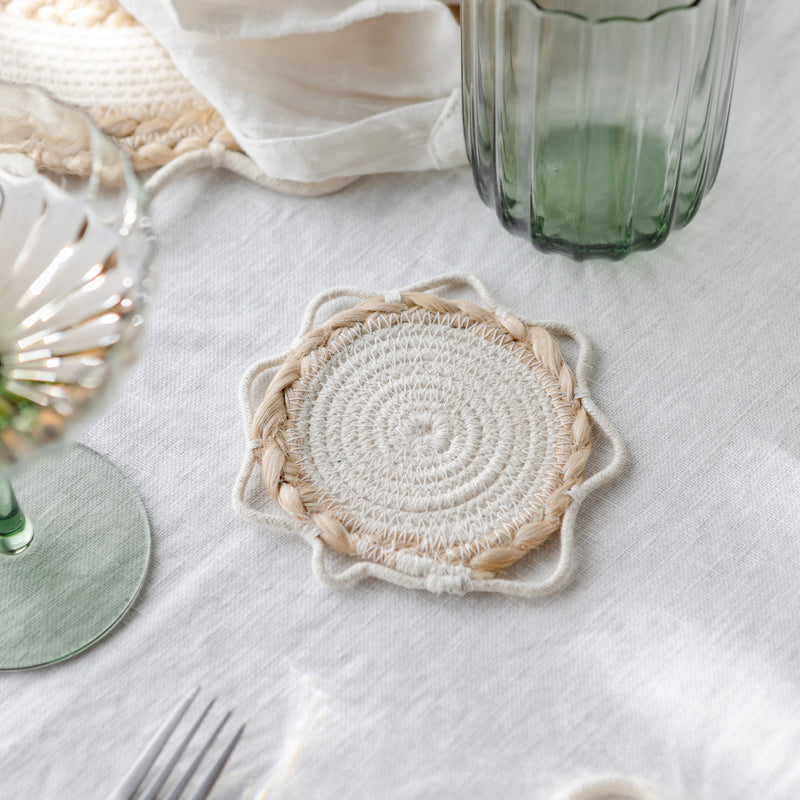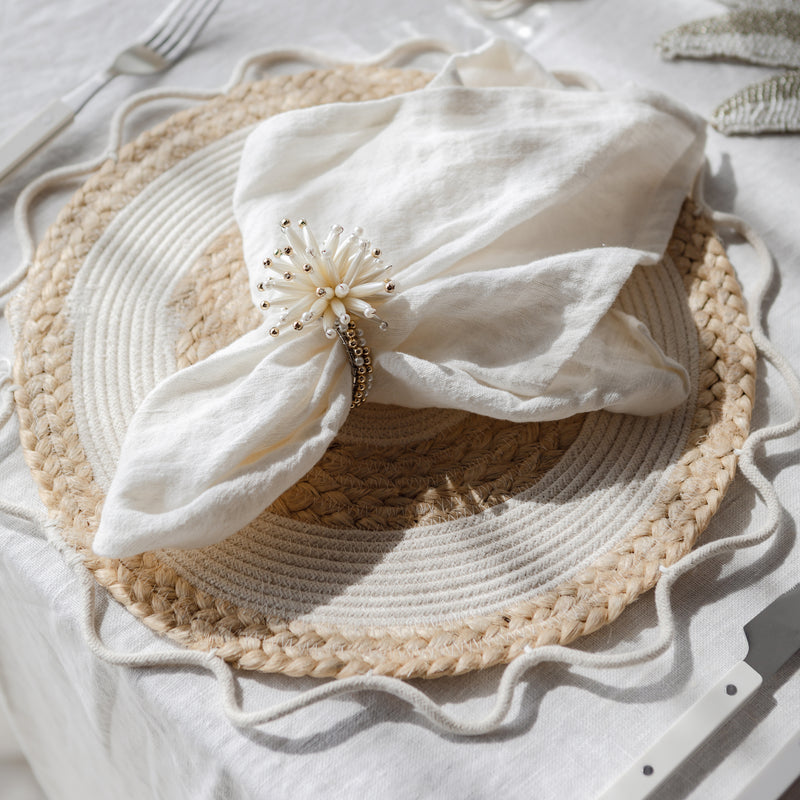 Add colour and texture to your table setting this summer with the new Ila range. Featuring a circular woven design and scalloped rope detailing, available in Blue, Brown, Natural, Gold and Silver.