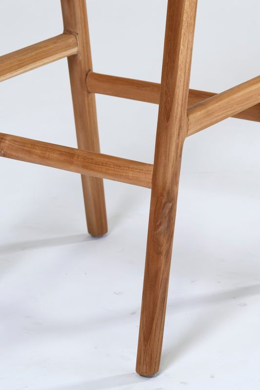 Made with solid natural teak frame and tan leather seat for added comfort and support. Available in 65 cm or 75 cm seat height.