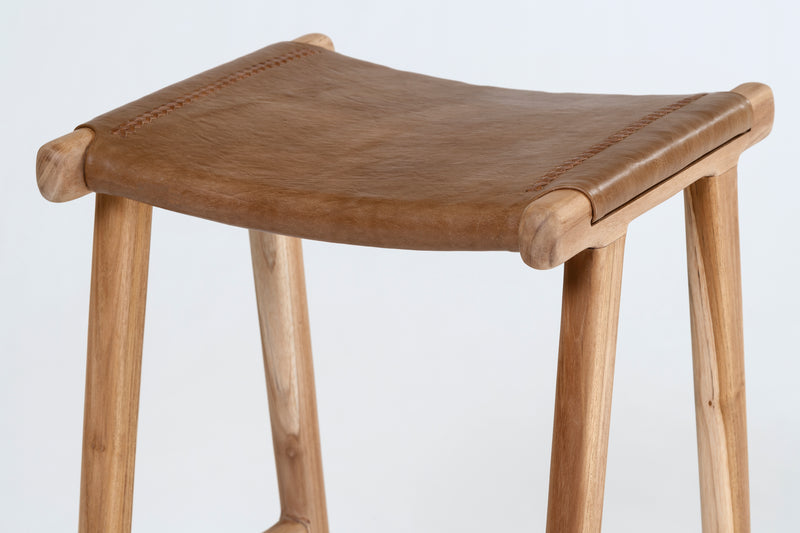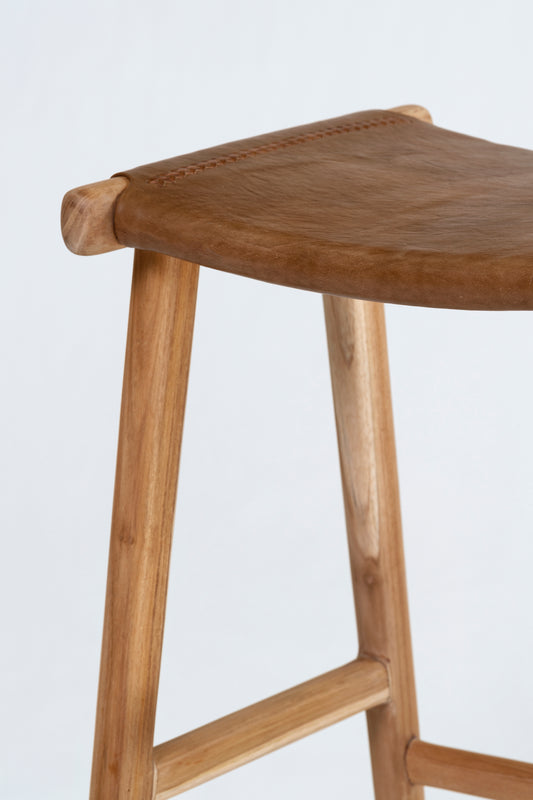 Jok Stool — Teak/Tan Leather