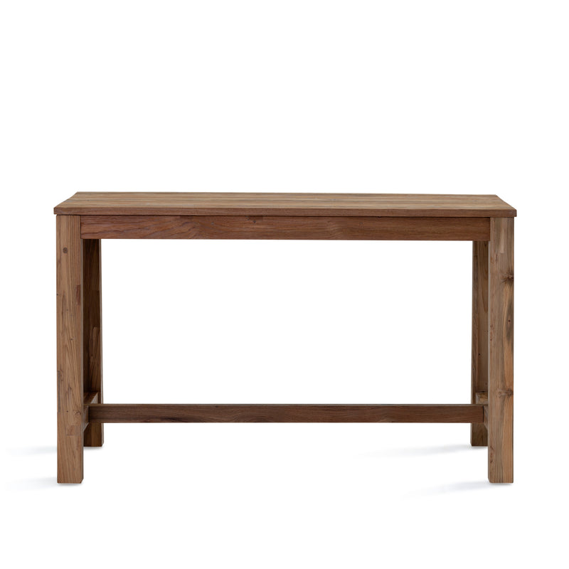 Our timeless Jackson Bar Table, is constructed from teak wood with solid legs design and cross bar design. The tabletop features horizontal boards in three slats, this feature makes it a great piece for full outdoors.
