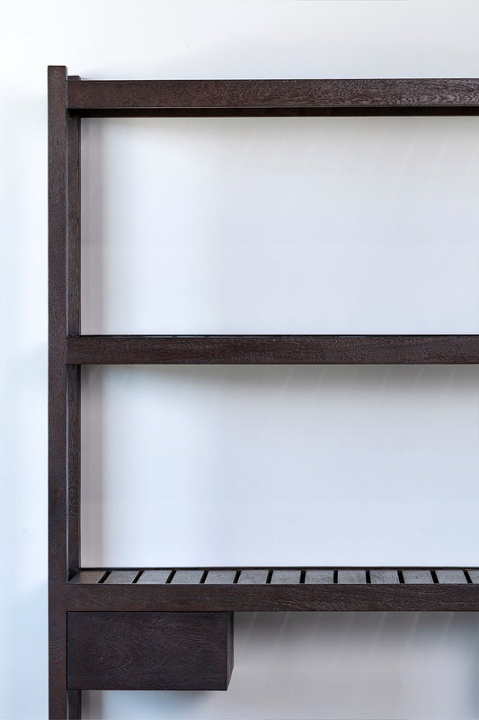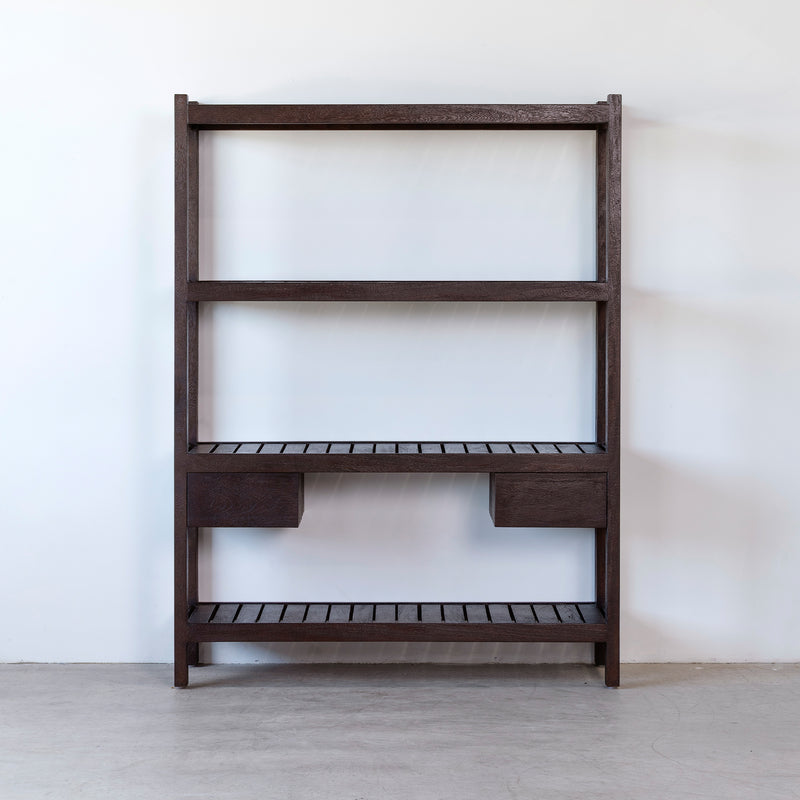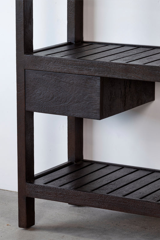 Our EMPIRE Kitchen Rack is a multi-purpose shelving system. Made of solid mango wood in an espresso finish. The rack features 4 shelves with 2 drawers.