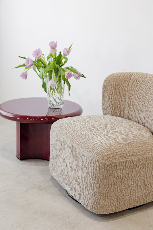 Our new Knox Chair pairs comfort with luxury living featuring a curved backrest, cut out detailing and generous seat depth. Bring texture and interest into your space with the pebbled upholstery details, available in three colourways, cream, truffle and caramel. These neutral tones are perfect for adding warmth to any room.