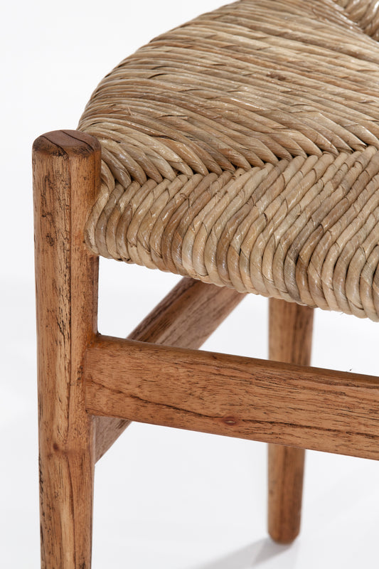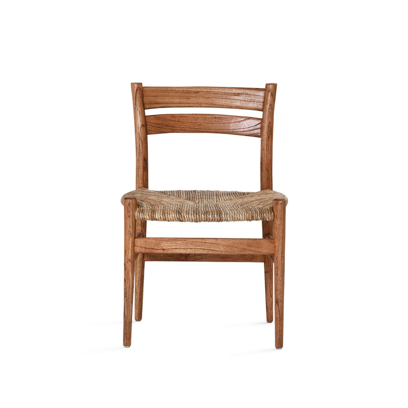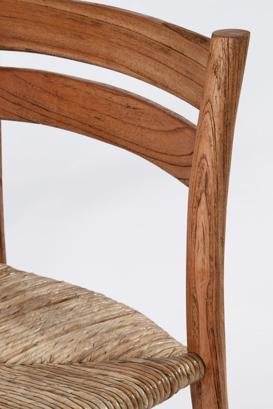 The Kodak chair made from mindi wood in antique finish, featuring a rush wicker seat and gently curved back for a touch of style and ample comfort.