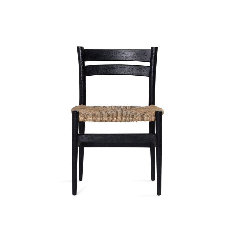 - Mango wood in black finish frame with rush seat.