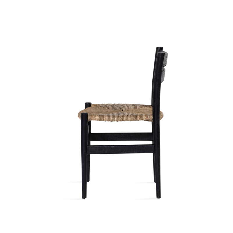 The Kodak chair made from mango wood in black finish, featuring a rush wicker seat and gently curved back for a touch of style and ample comfort.
