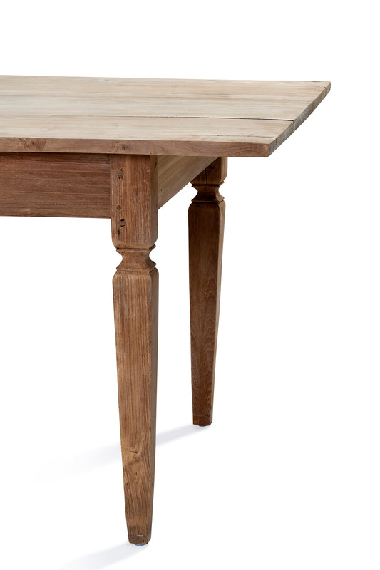 Our Lawas dining table exudes character and is composed of solid teak, in a rectangle shape top with detailed carving on the legs.