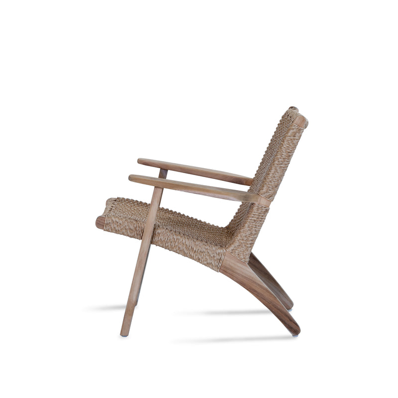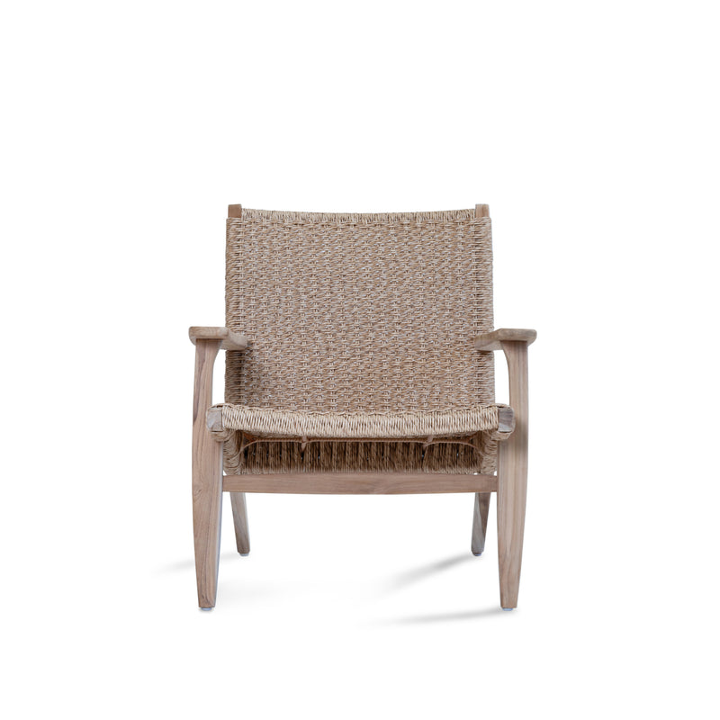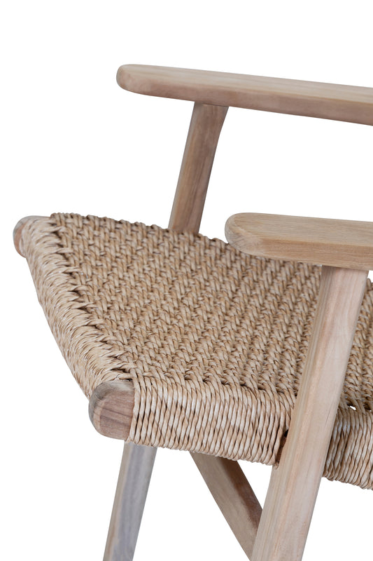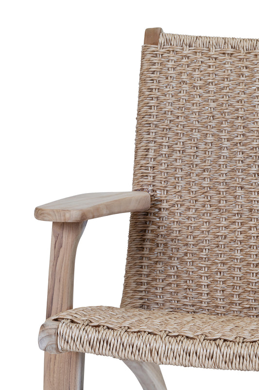 Beautifully crafted from solid teak wood, the Lola chair adds a classic, organic touch to any outdoor space. The rush woven seat and back provide a comfortable seat while giving the chair an eye-catching, textural feel.