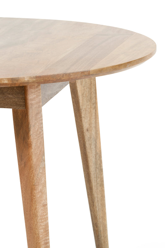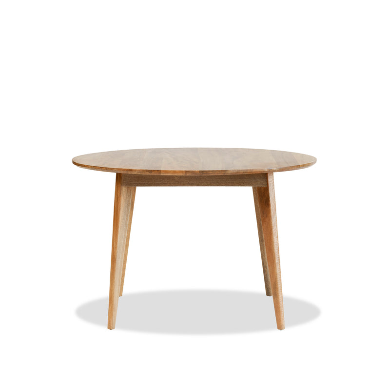 Built from solid mango wood with a Natural Sealed finish. Round shape with tapered legs.