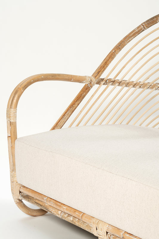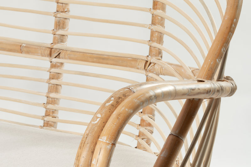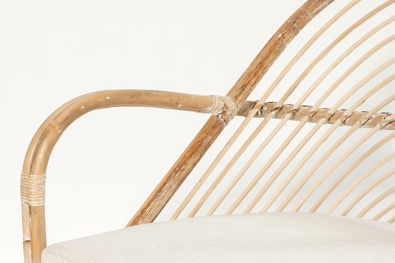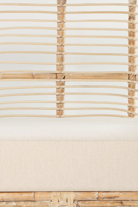 - Whitewash frame with Bahama sand upholstered seat cushion.