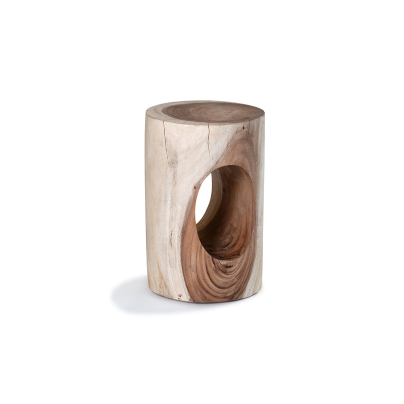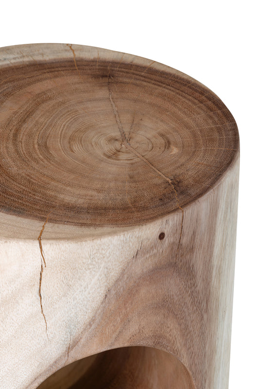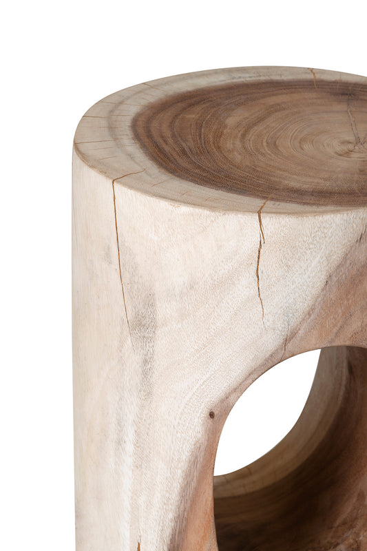 Constructed from raw meh wood with one open middle design, this hardwood stool is highly durable. Colours/finishes between items may vary and some slightly cracking can occur, due to the natural nature of the timber.