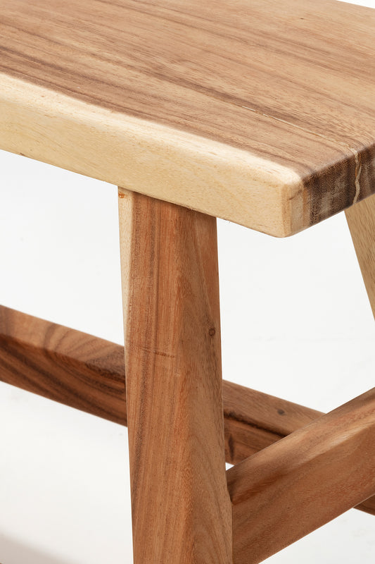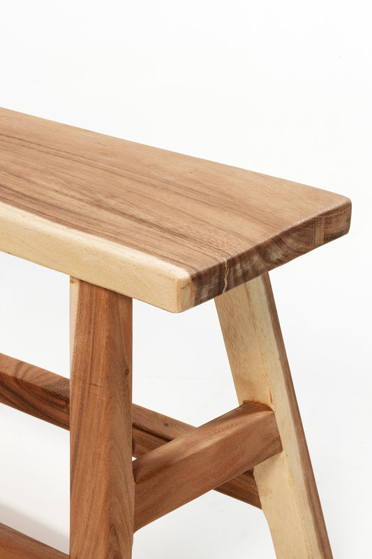 Constructed from raw timber with solid seat component, this hardwood bench is highly durable. Colours/finishes between items may vary and some slightly cracking can occur, due to the natural nature of the timber.