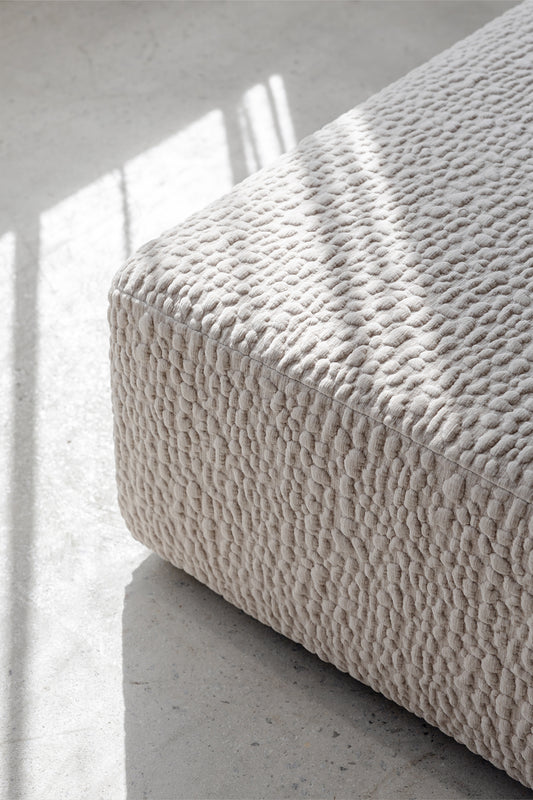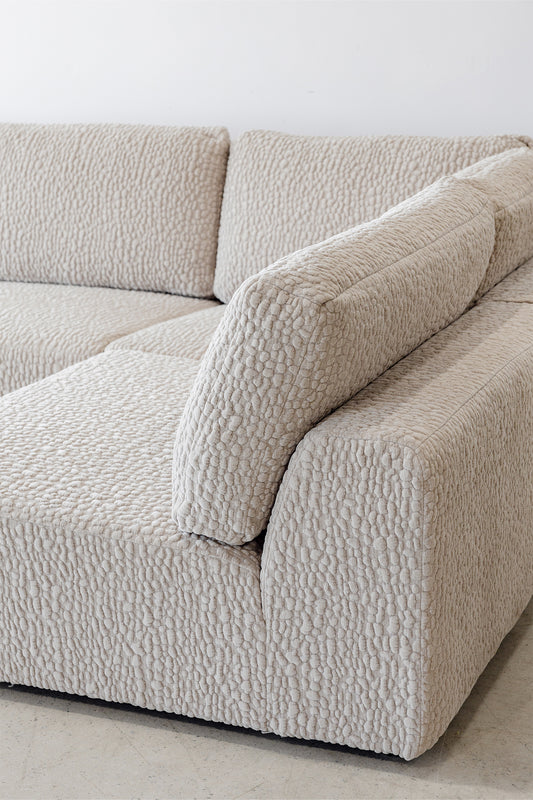Modern and practical, The Milo sectional sofa offers generous comfort with deep seating and low back design. Now available in our new Pebbled upholstery in cream or stone, giving it a beautiful tactile and textured feel. The Milo comes as 5 separate pieces including large ottoman that can be moved and configured to suit your space.
