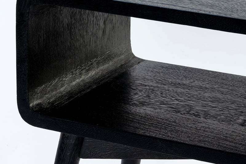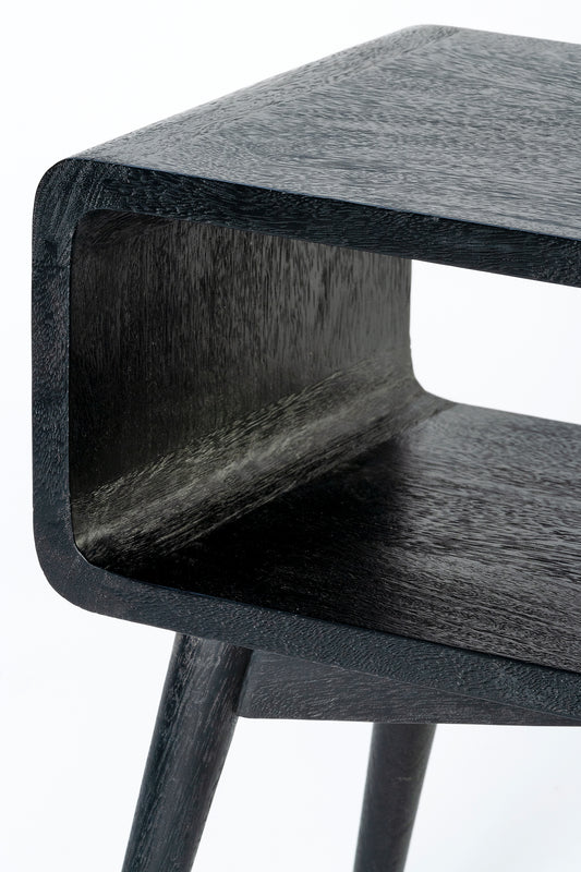 The Modular bedside is a classic rounded design with open storage. Made from mango wood in Black finish.
