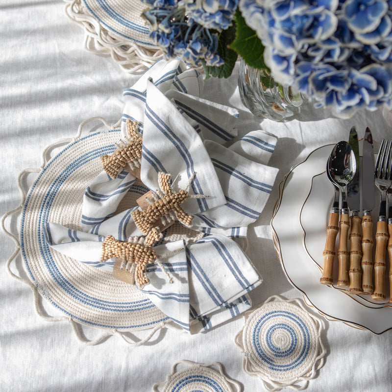 Bring summer elegance to your tabletop this season with our cotton serviettes. Sold in a set of four and available in blue stripe, white or denim, these serviettes are perfect for the entertaining season.