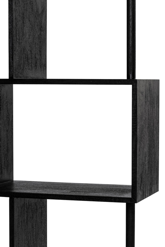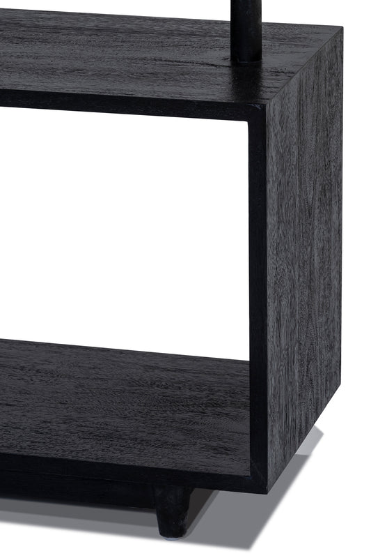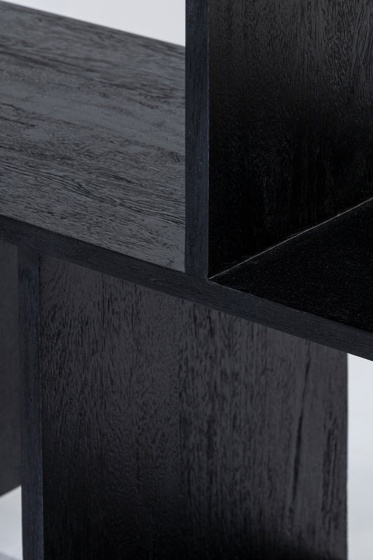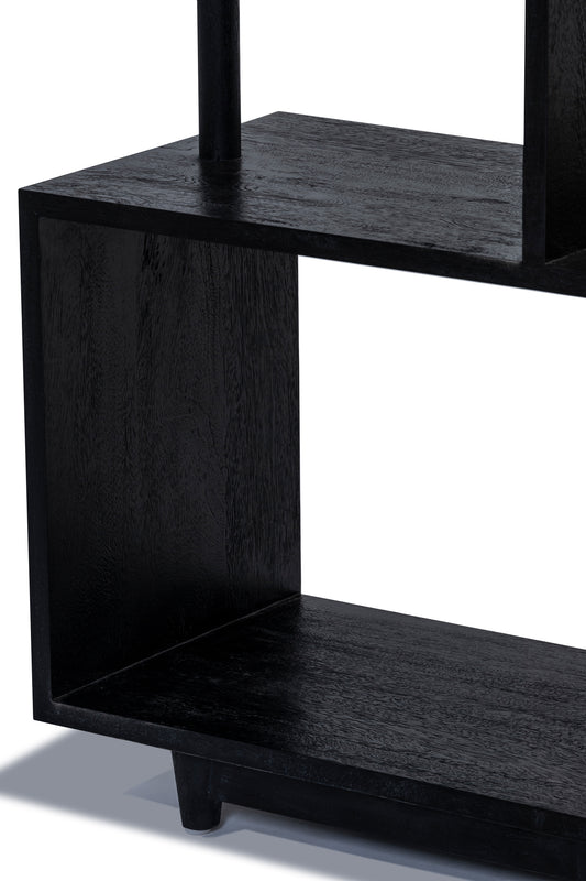 Morocco Bookcase or shelving unit, built from solid mango wood in black finish. Open shelves for optimum storage and display.