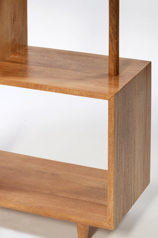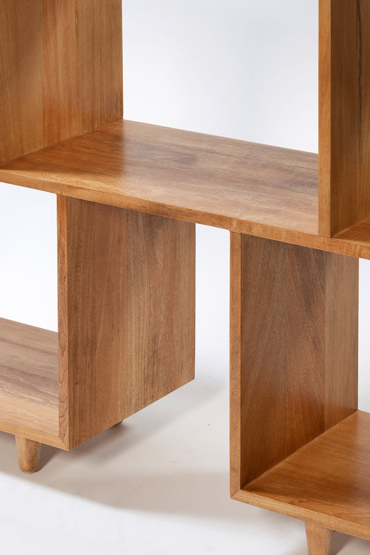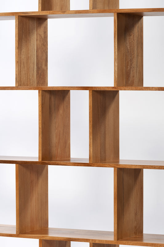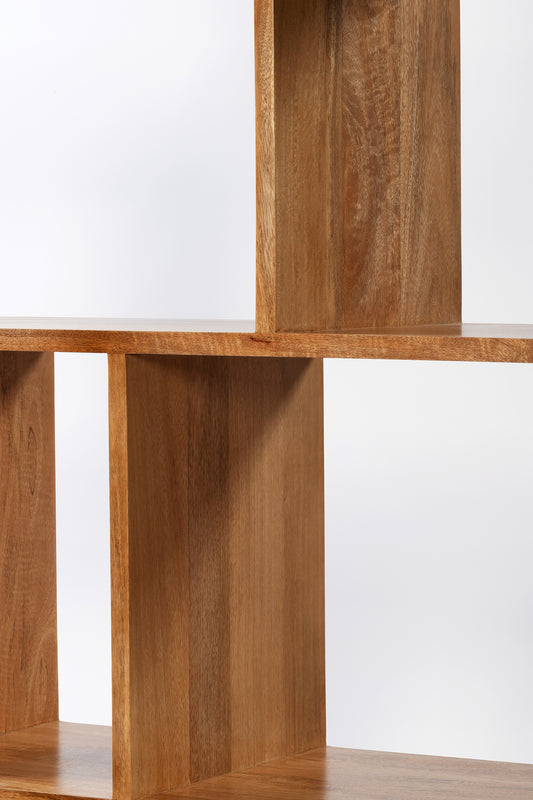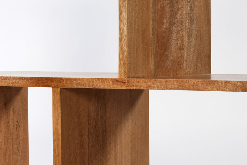 Morocco bookcase or shelving unit, built from solid mango wood in Natural Sealed finish. Open shelves for optimum storage and display.