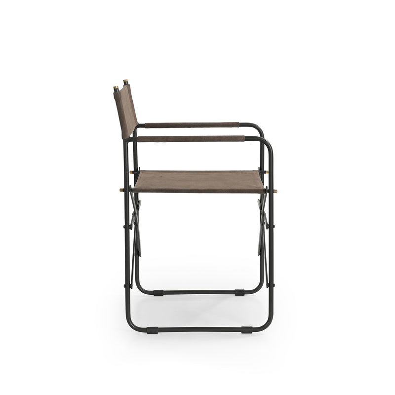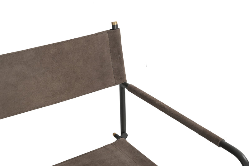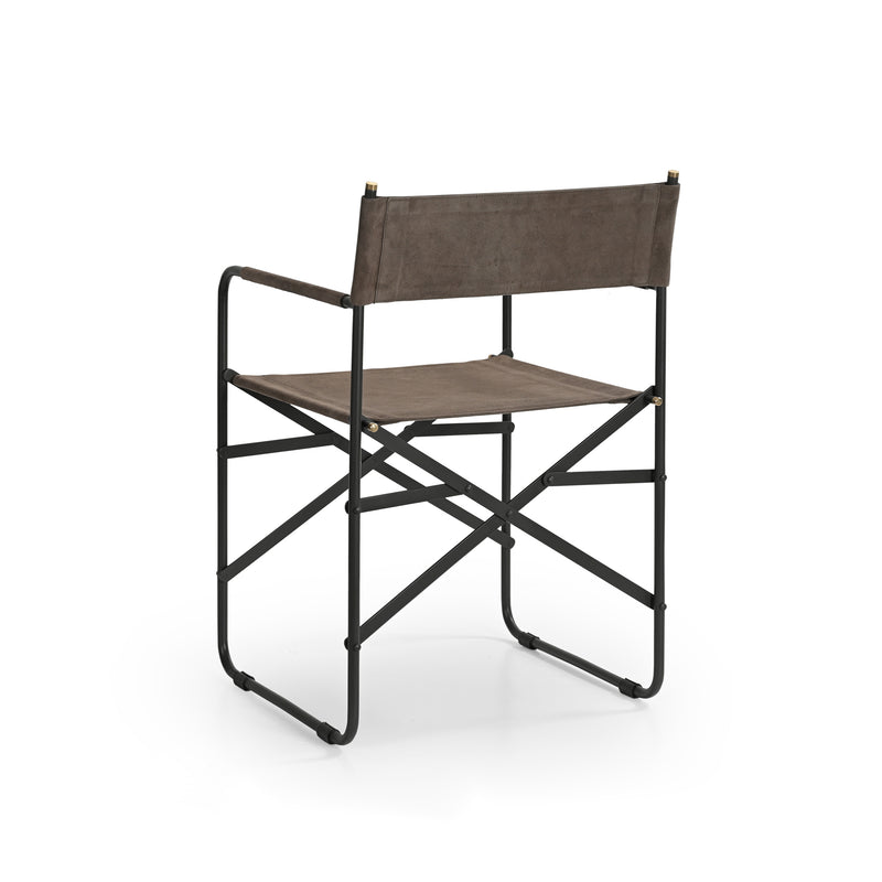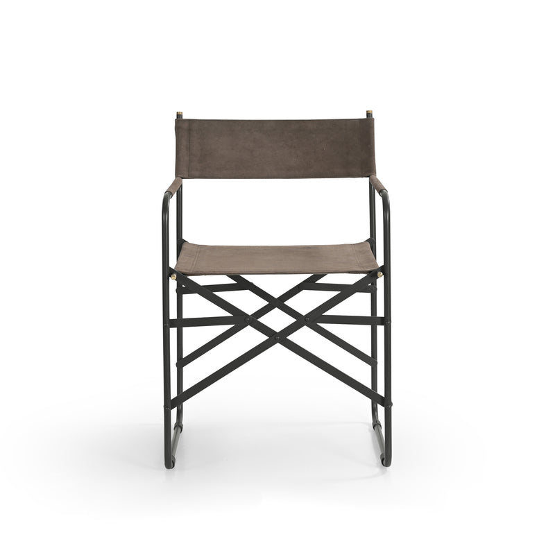 The Orson Folding Dining Chair is a stylish, functional and practical additional to your dining room space. Featuring a gun metal grey iron frame and grey suede upholstered seat and backrest, finished with brass finials. Perfect if additional seating is required as can easily be folded away when not in use.