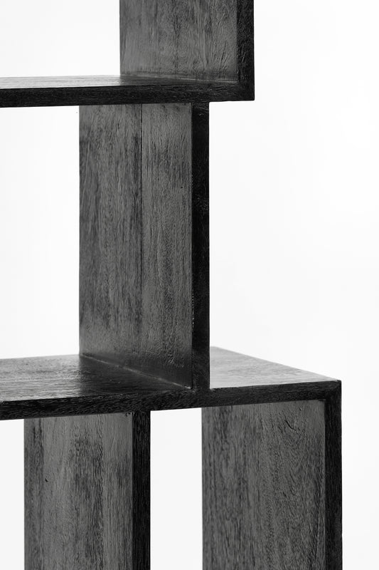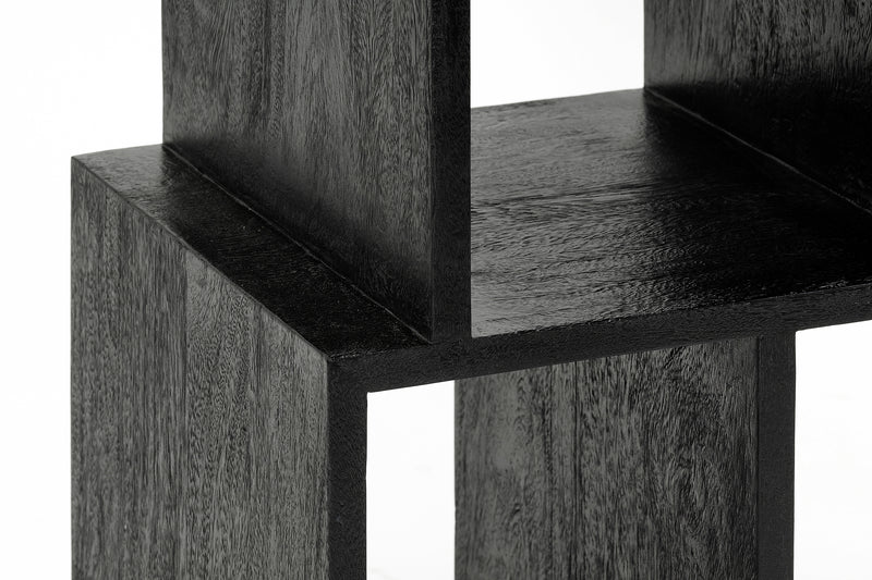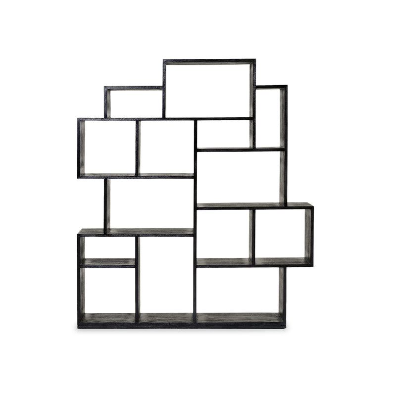Built from solid mango wood in Black finish, complete with fourteen offset display spaces in varying sizes and shapes. Available in large and small size.