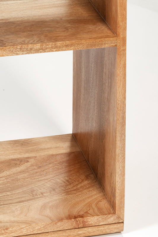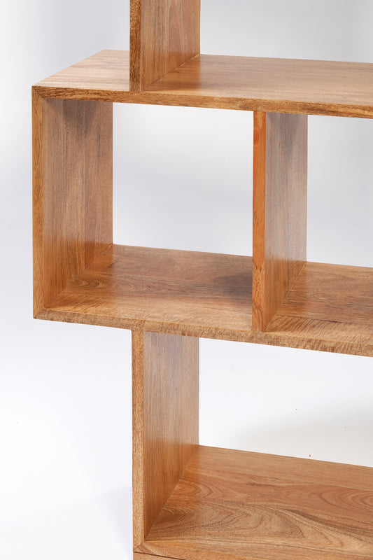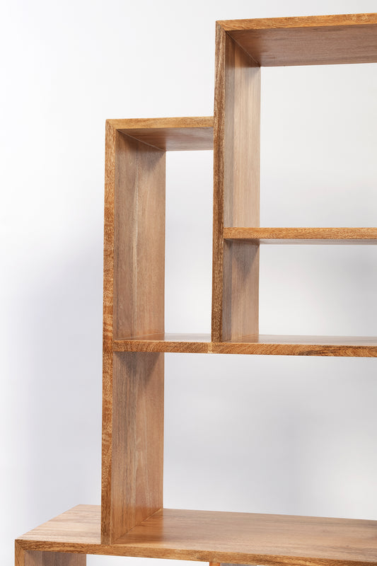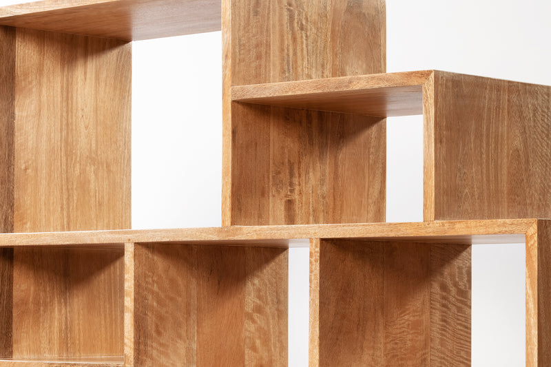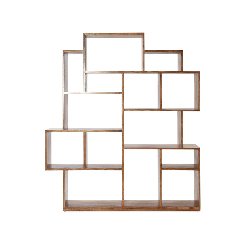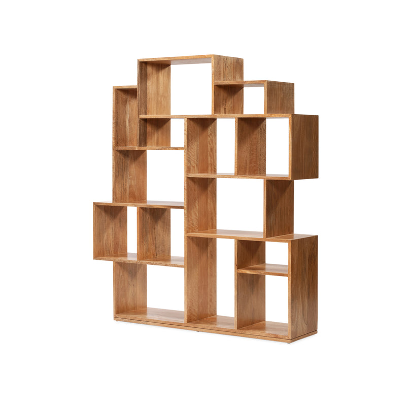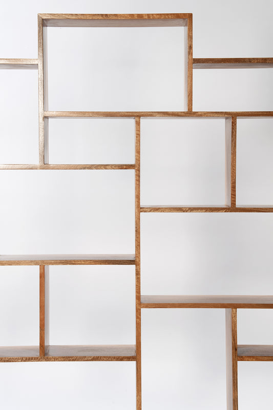 Built from solid mango wood in Natural Sealed finish, complete with fourteen offset display spaces in varying sizes and shapes. Available in large and small size.