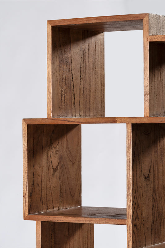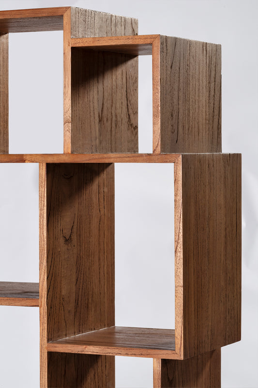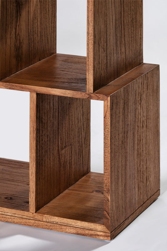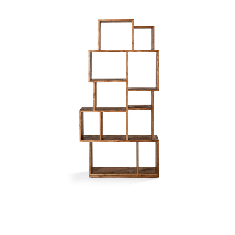 Built from solid mindi wood in Antique Mindi finish, complete with eleven offset display spaces in varying sizes and shapes. Available in large and small size.