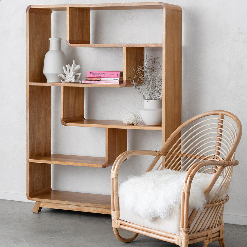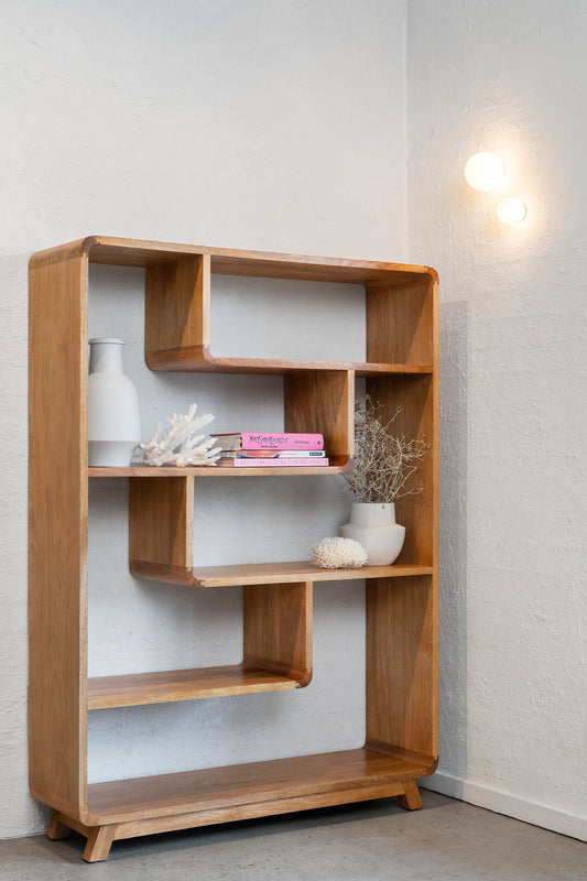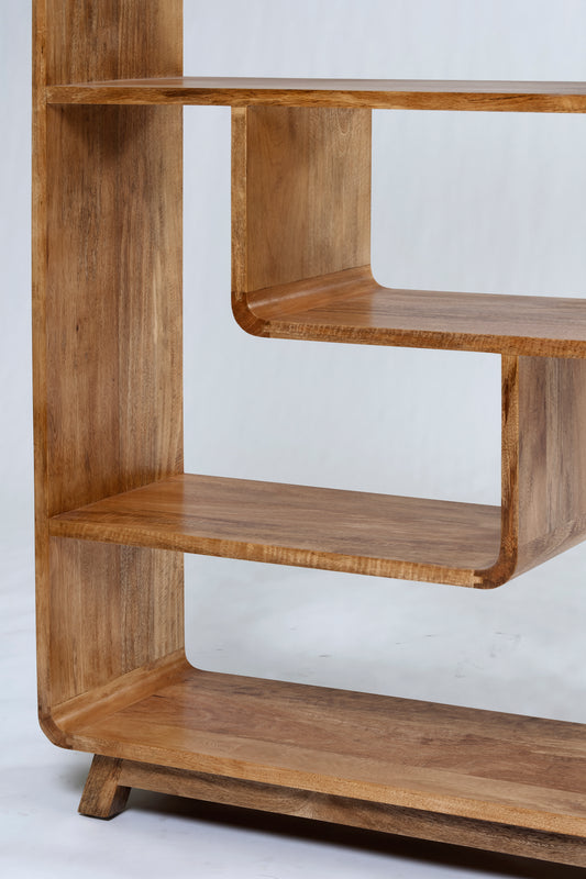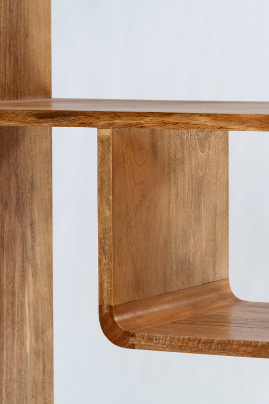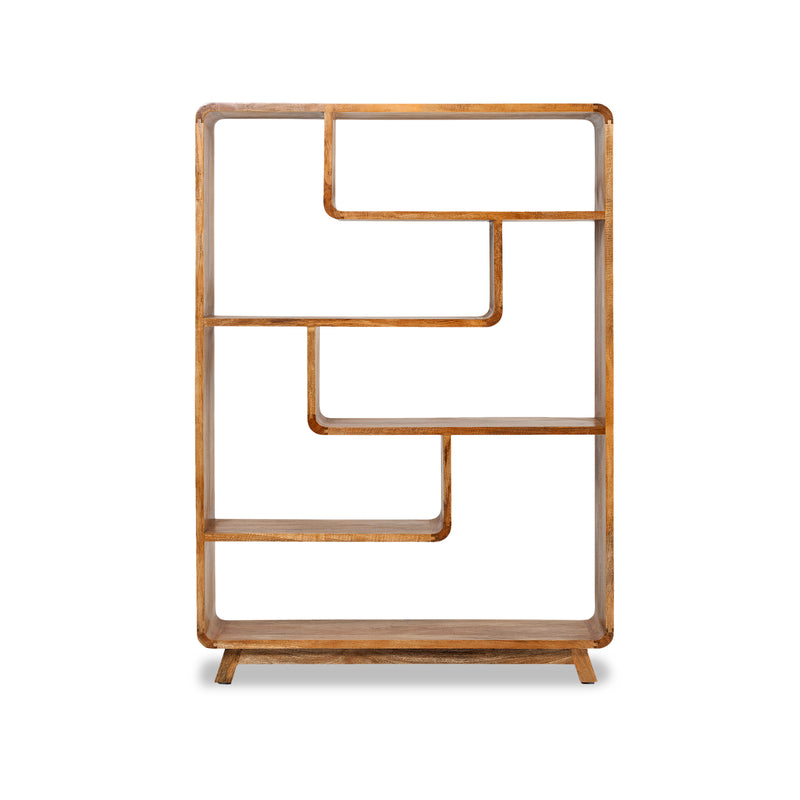 Built from solid mango wood in a Natural Sealed finish, complete open shelf spaces within rectangle shape on retro shapes legs.