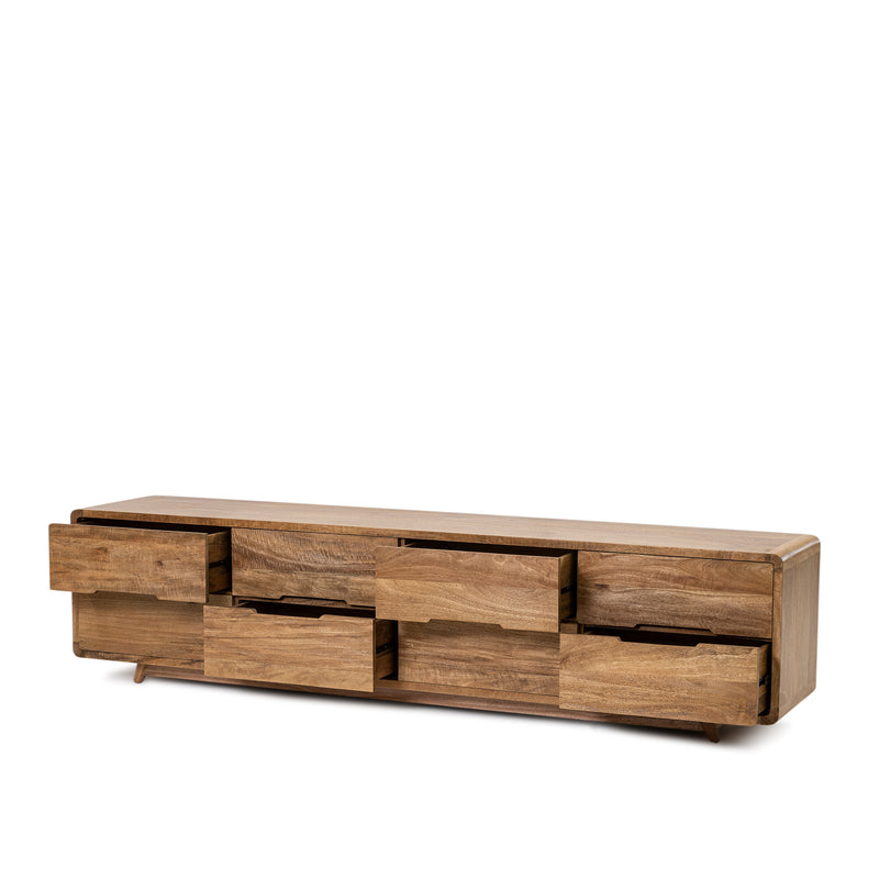 The Penfolds Chest made from mango wood in natural sealed finish with large solid sliding drawers with cut out handle. Pictured is the Penfolds 2x4 (two drawers high and four drawers wide) with the top two middle drawers removed. Please refer to the Penfolds configuration information sheet for further options.