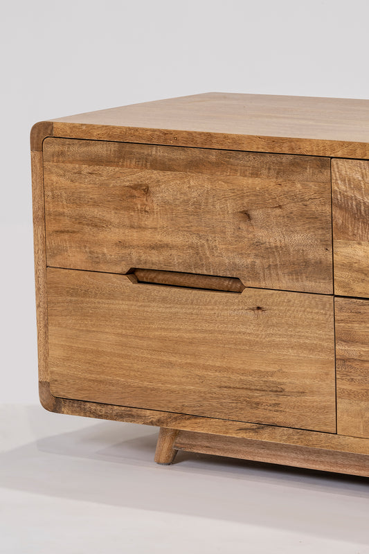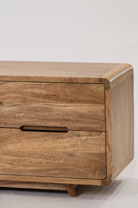 - Mango wood Natural finish, Hafele superior German engineered hardware, soft drawer runners.