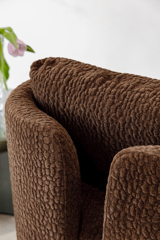 Our new Phoenix Chair pairs comfort with luxury living featuring a curved backrest, cut out detailing and generous seat depth. Bring texture and interest into your space with the pebbled upholstery details, available in three colourways, cream, truffle and caramel. These neutral tones are perfect for adding warmth to any room.