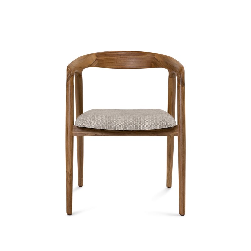 The Ralph Chair, features an simple yet elegant, soft curve design. Made from sustainable teak wood in a raw sealed finish and complete with comfortable water-resistant seat cushion in sunproof Fontelina 180 fabric.