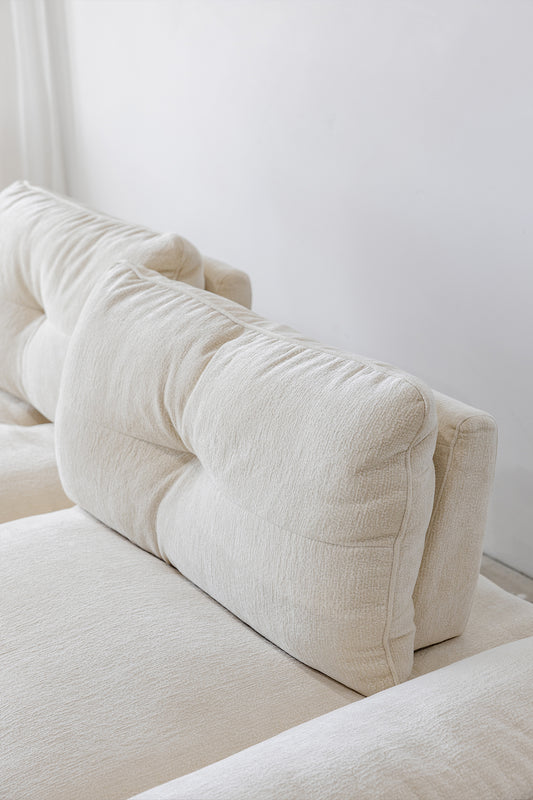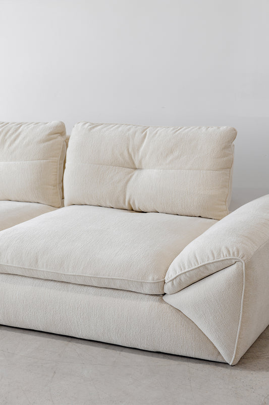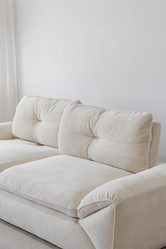 - Two separate pieces for easy manoeuvring. Clips are on bottom of the sofa to secure the two pieces together.