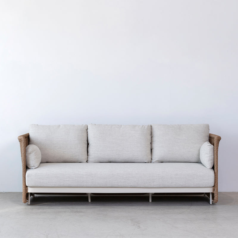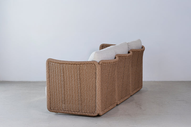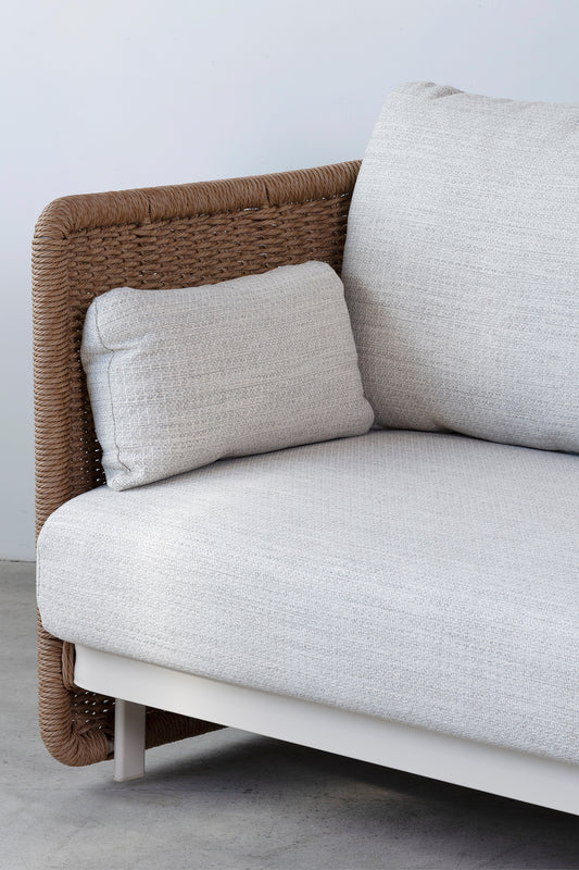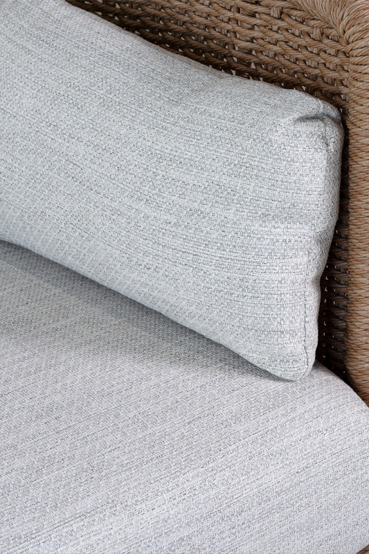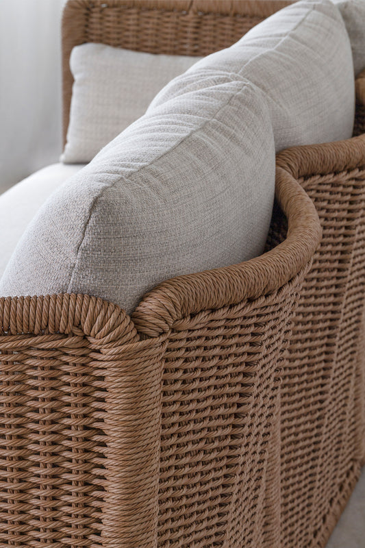 Designed for laidback entertaining, the Rockpool Sofa blends clean lines with artisanal detail. Its powder-coated aluminium frame is wrapped in hand-woven wicker, while generous cushions and pillows create a plush, inviting seat. A natural, neutral palette ensures seamless styling across outdoor and indoor settings alike.