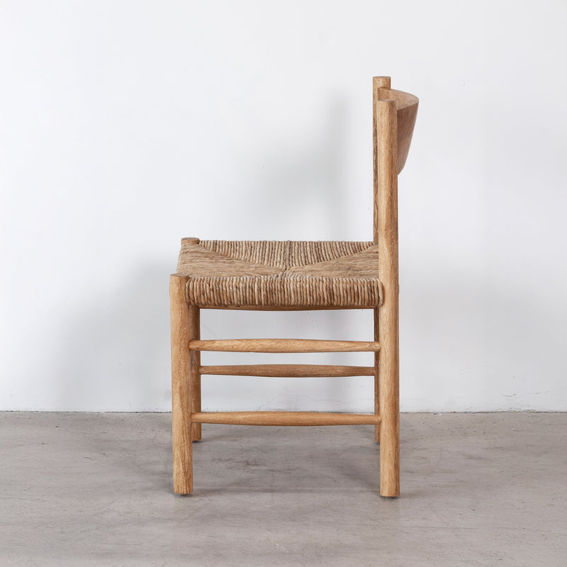 The Roger chair made from mango wood in a rustic matte finish, featuring a rush wicker seat and gently curved back for a touch of style and ample comfort.