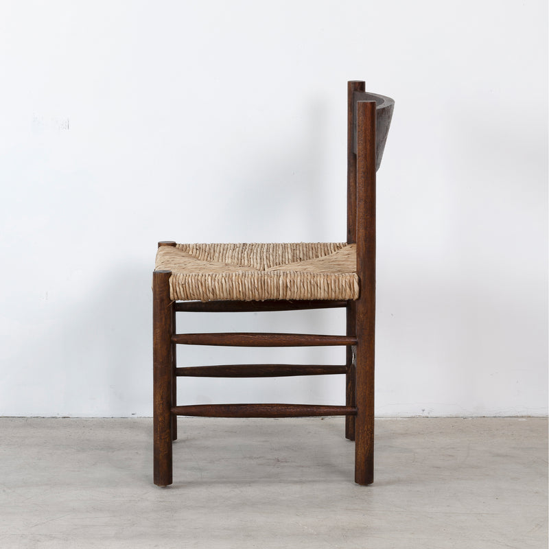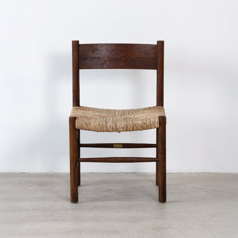 The Roger chair made from mango wood in a rustic walnut finish, featuring a rush wicker seat and gently curved back for a touch of style and ample comfort.