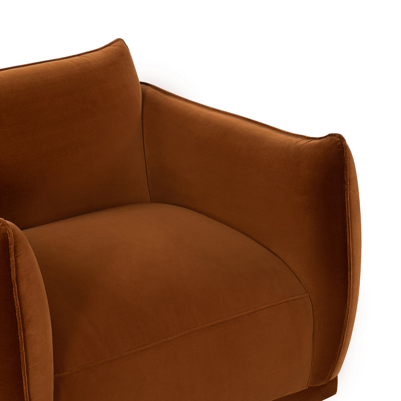 The Rufus Armchair is the perfect blend of sophistication and comfort, featuring a deep lounge seat with modern, masculine curves and complete with cotton velvet upholstery in Dune. The perfect occasional chair for any living room, study or bedroom.