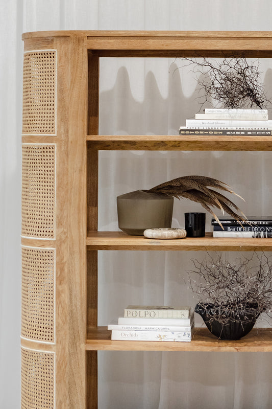 Sergio Bookcase — Rustic Matte/Natural Rattan