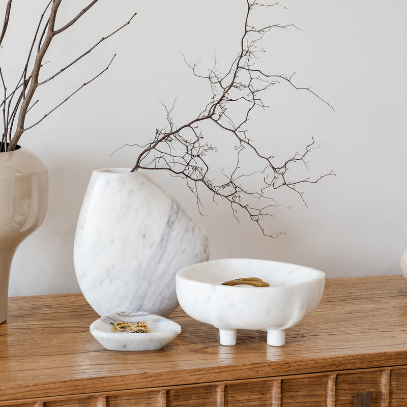 The Suki Marble Tri Bowl is hand crafted from panda marble in a softened triangular shape. A perfect addition to place on your tabletop, hallway table or coffee table.