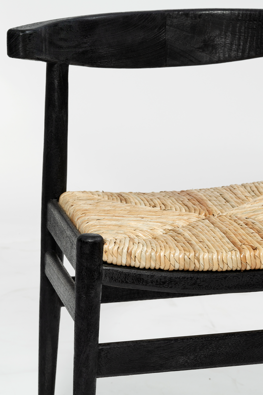 Tanduk chair, made from mango wood with a Black frame. Complete with natural rush seat for extra durability and support.
