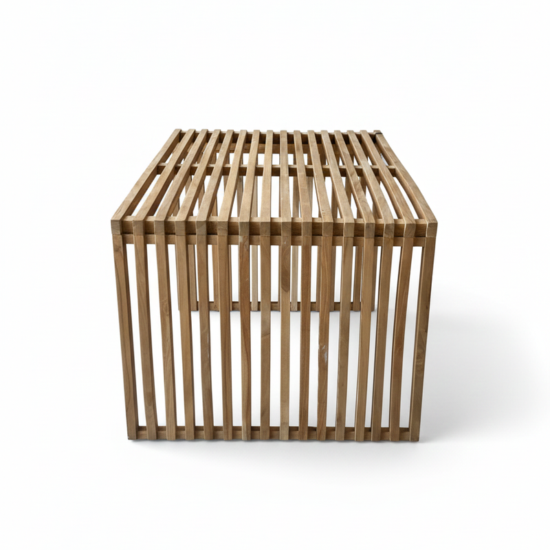 Sleek and timeless, the Teak Slatted Large Side Table combines contemporary form with the natural beauty of solid teak. It showcases expert craftsmanship and clean, architectural lines.