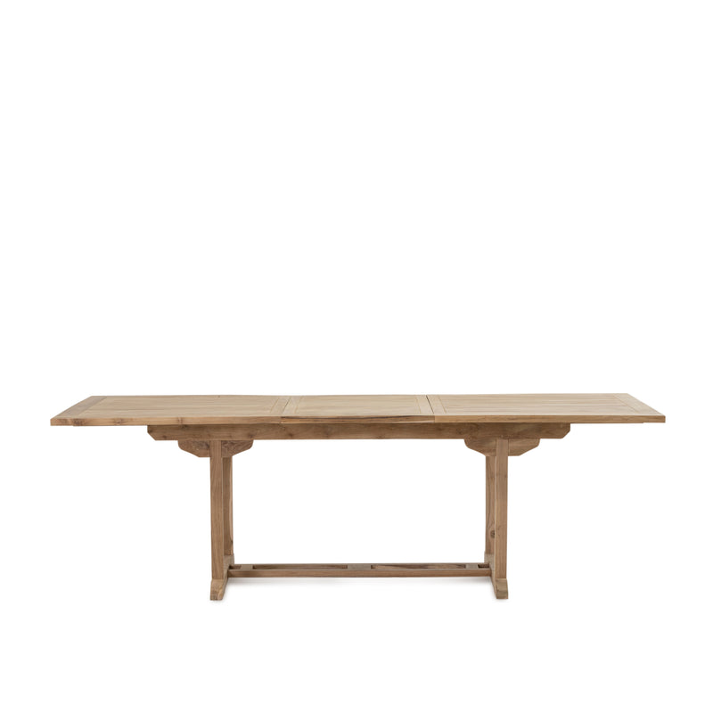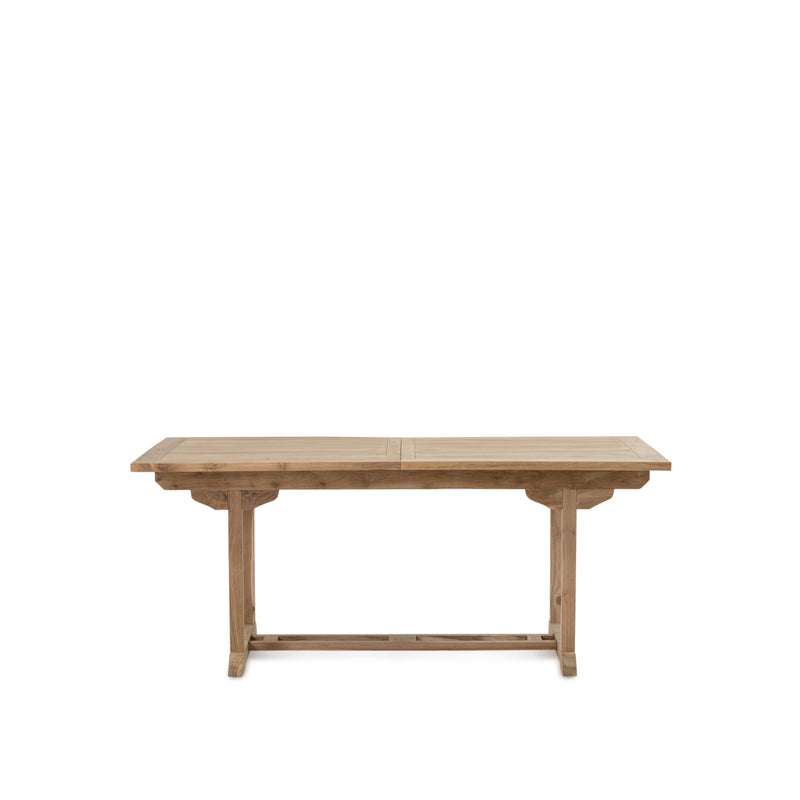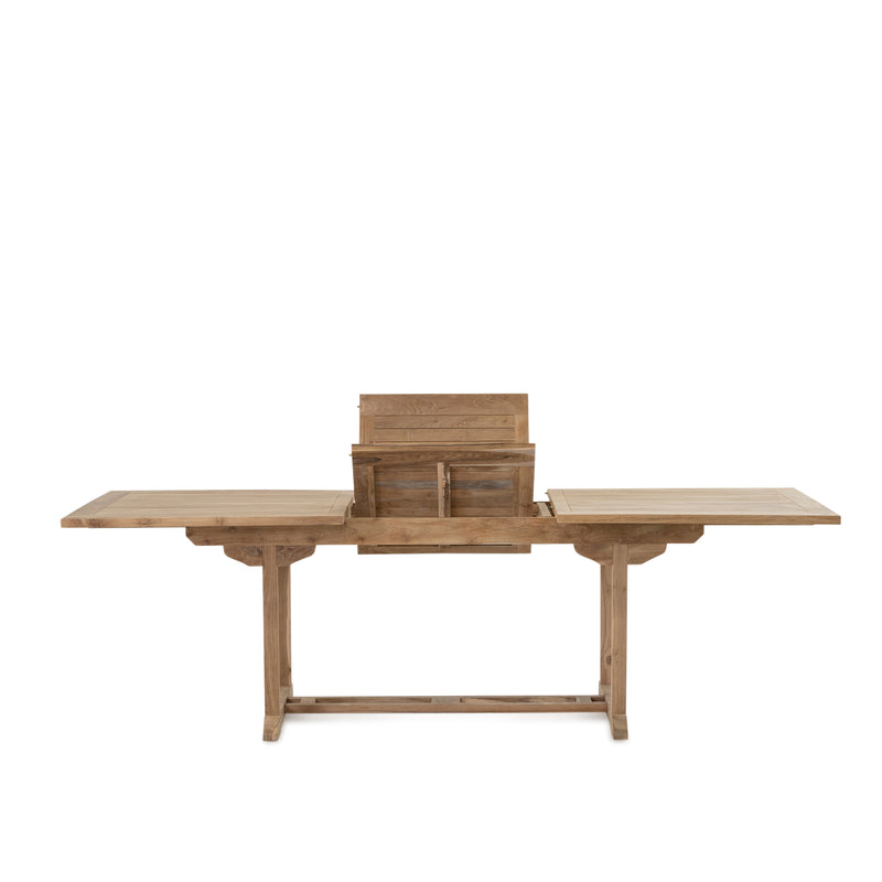 Outdoor teak extension table made from high quality teak wood in raw finish. It features a 'butterfly' extension, which is easily deployed, simply pull away the ends to reveal the extension panel or easily push the extension panel back into place and close up the table for everyday use.