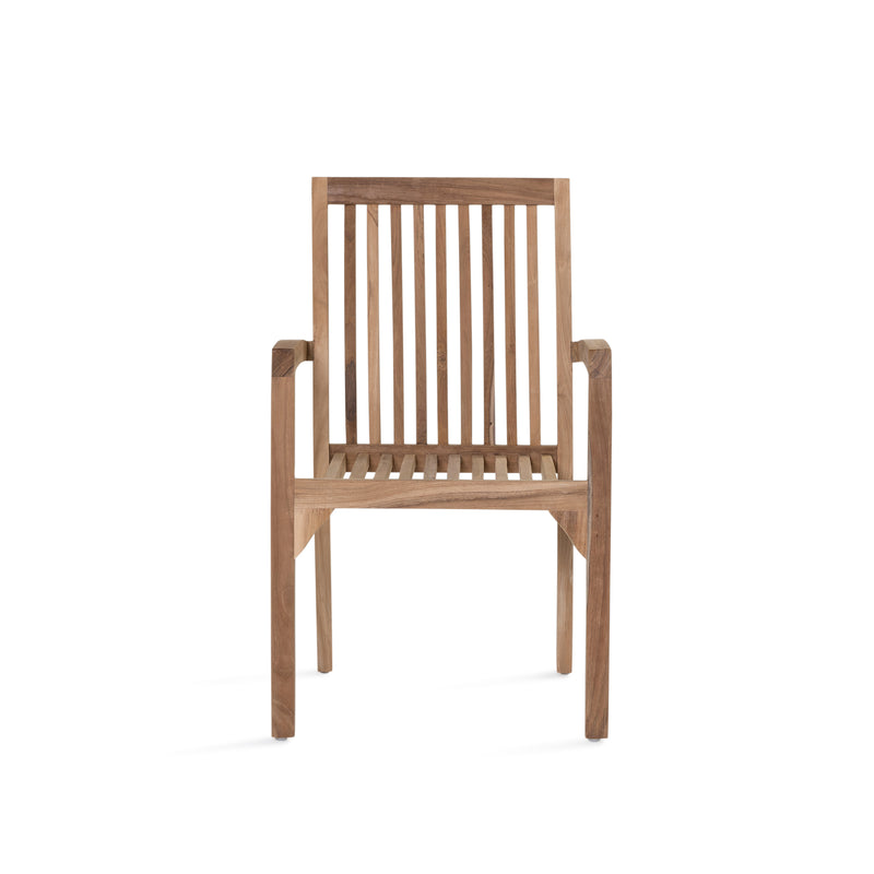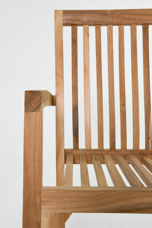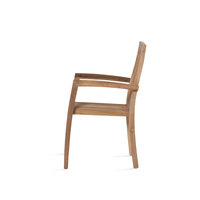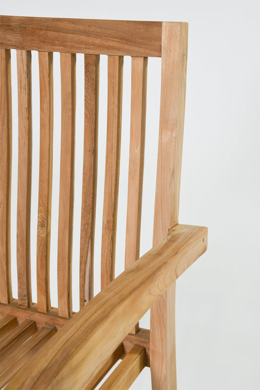 The Teak Steking Arm Chair is crafted from high quality teak wood in a raw finish, providing strength, durability, and a timeless look. Perfect for indoor or outdoor use.