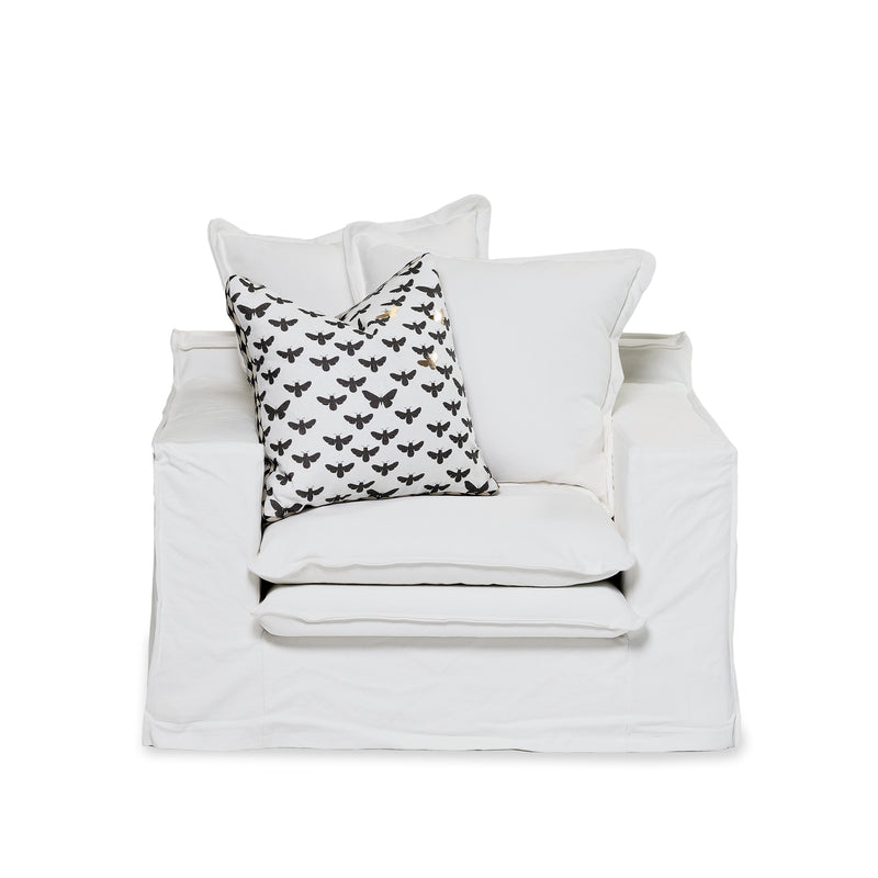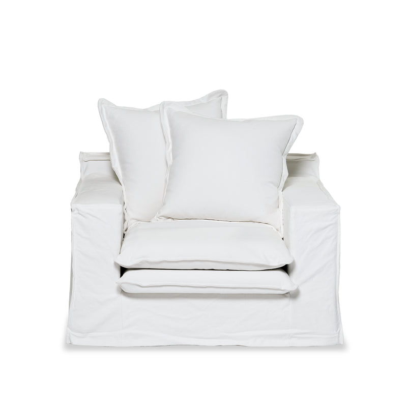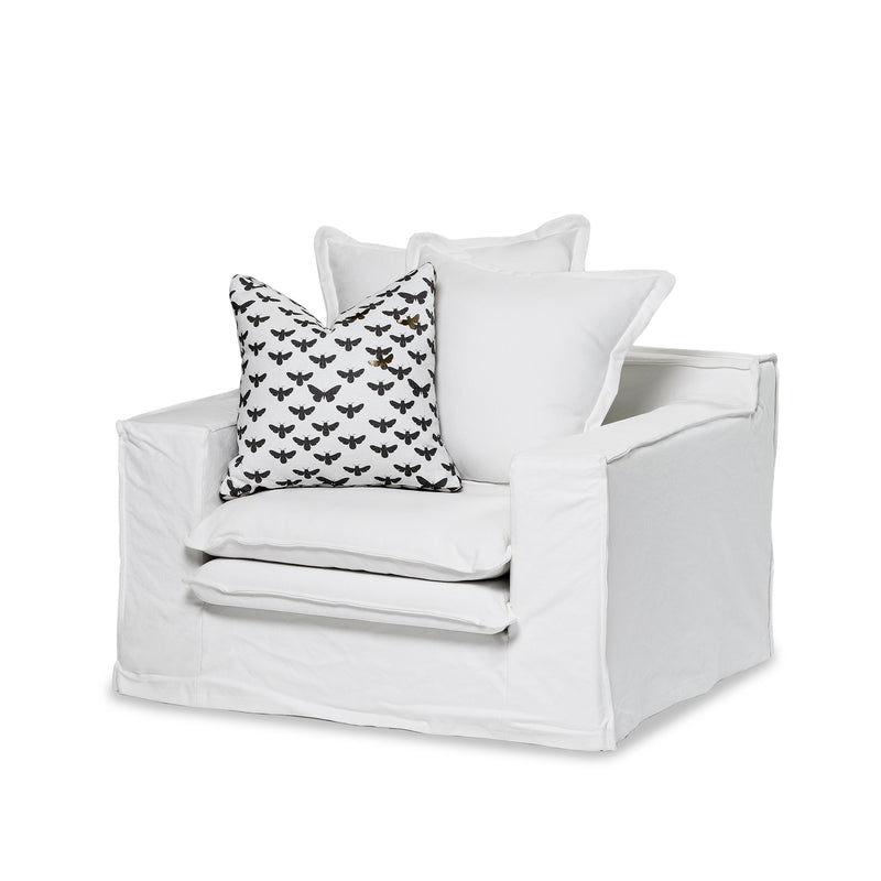The Yuki Loveseat in White is a 1 seater armchair and is all about simple comfort. A generously large armchair, complete with feather scatter cushions for maximum comfort and support.