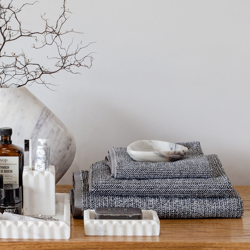 The Tweed bath towel range features a contemporary design that is created by using a special weaving technique that blends a range of coloured yarns together to produce a unique melange effect.