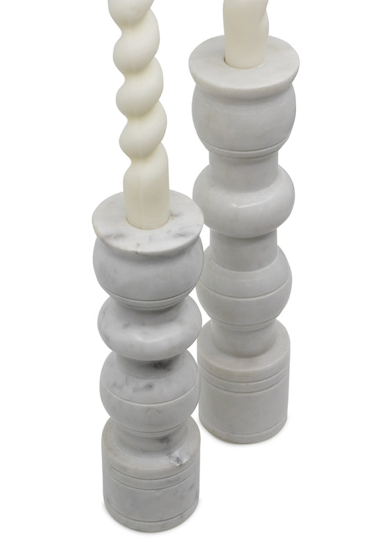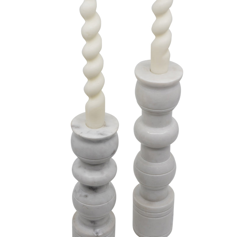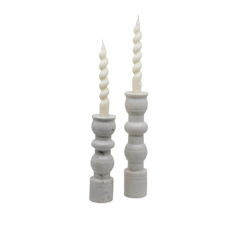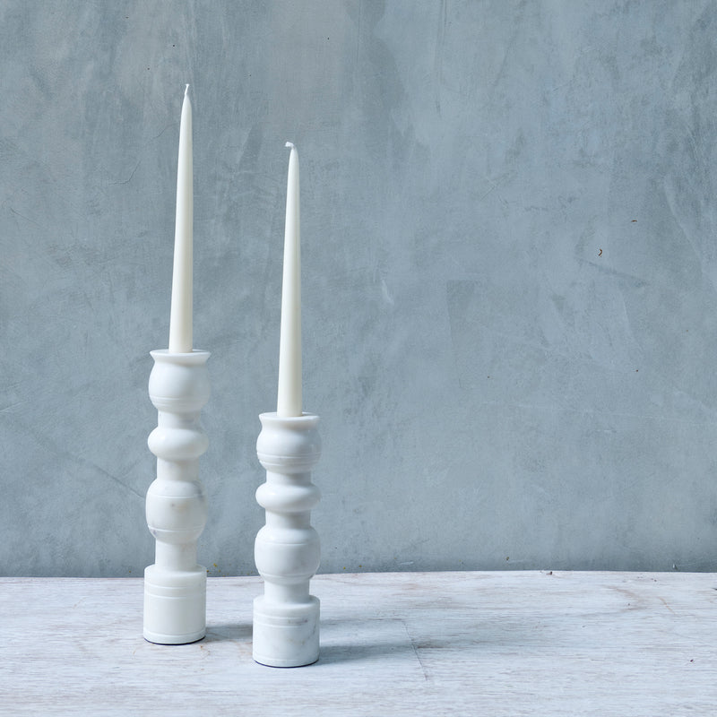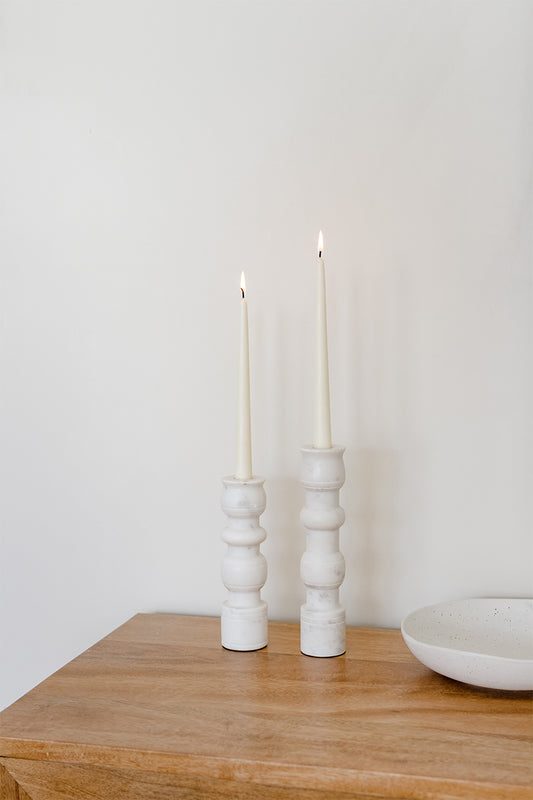 The White Marble Candle Holders are the perfect addition to your tabletop or mantelpiece. Each candle holder perfectly fits our tapered candles.